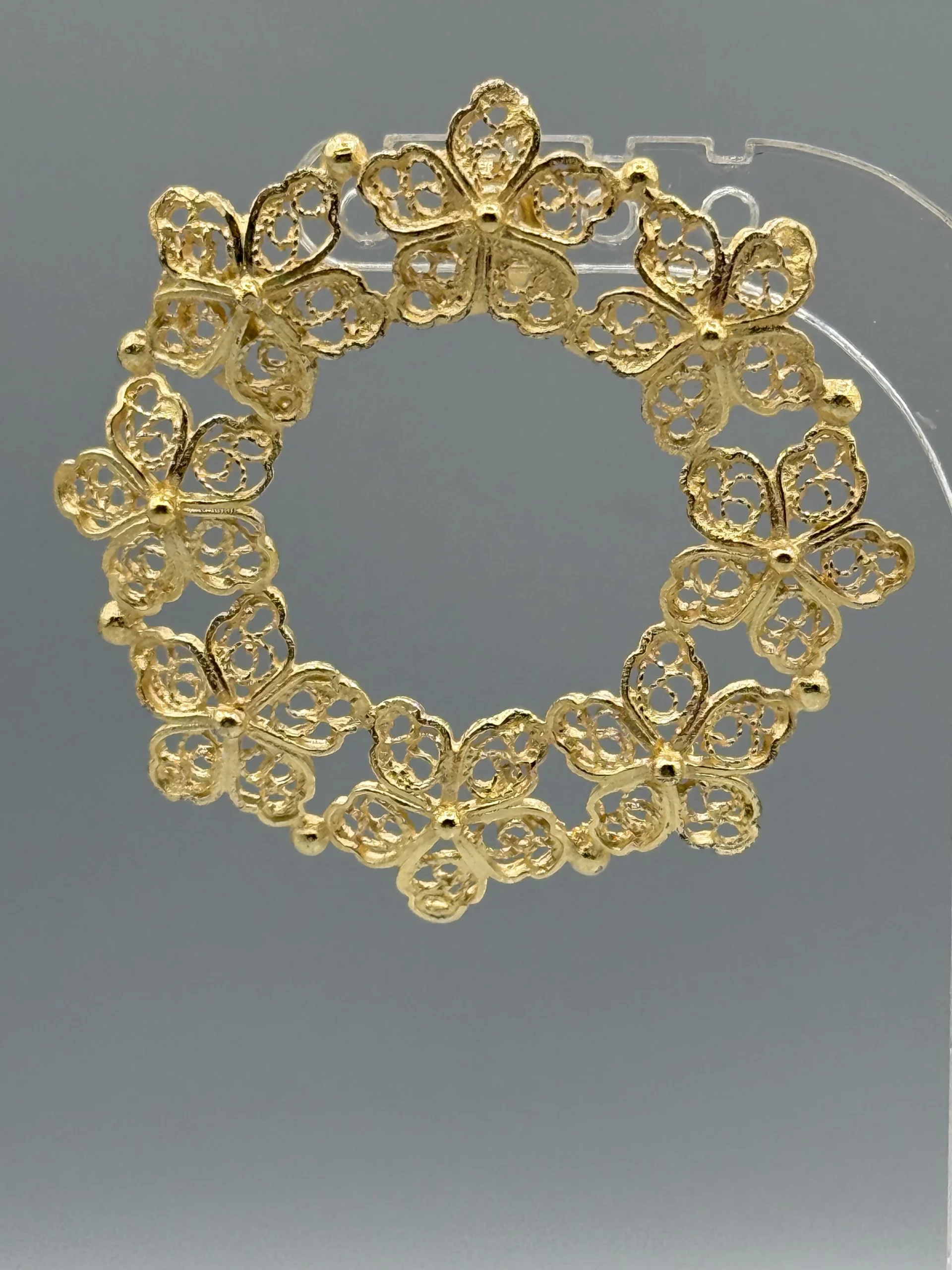 Agrega sofisticación a tu look con estos pendientes dorados de filigrana de metal bañados en oro. Estos pendientes son la elección perfecta para una apariencia elegante y con estilo.