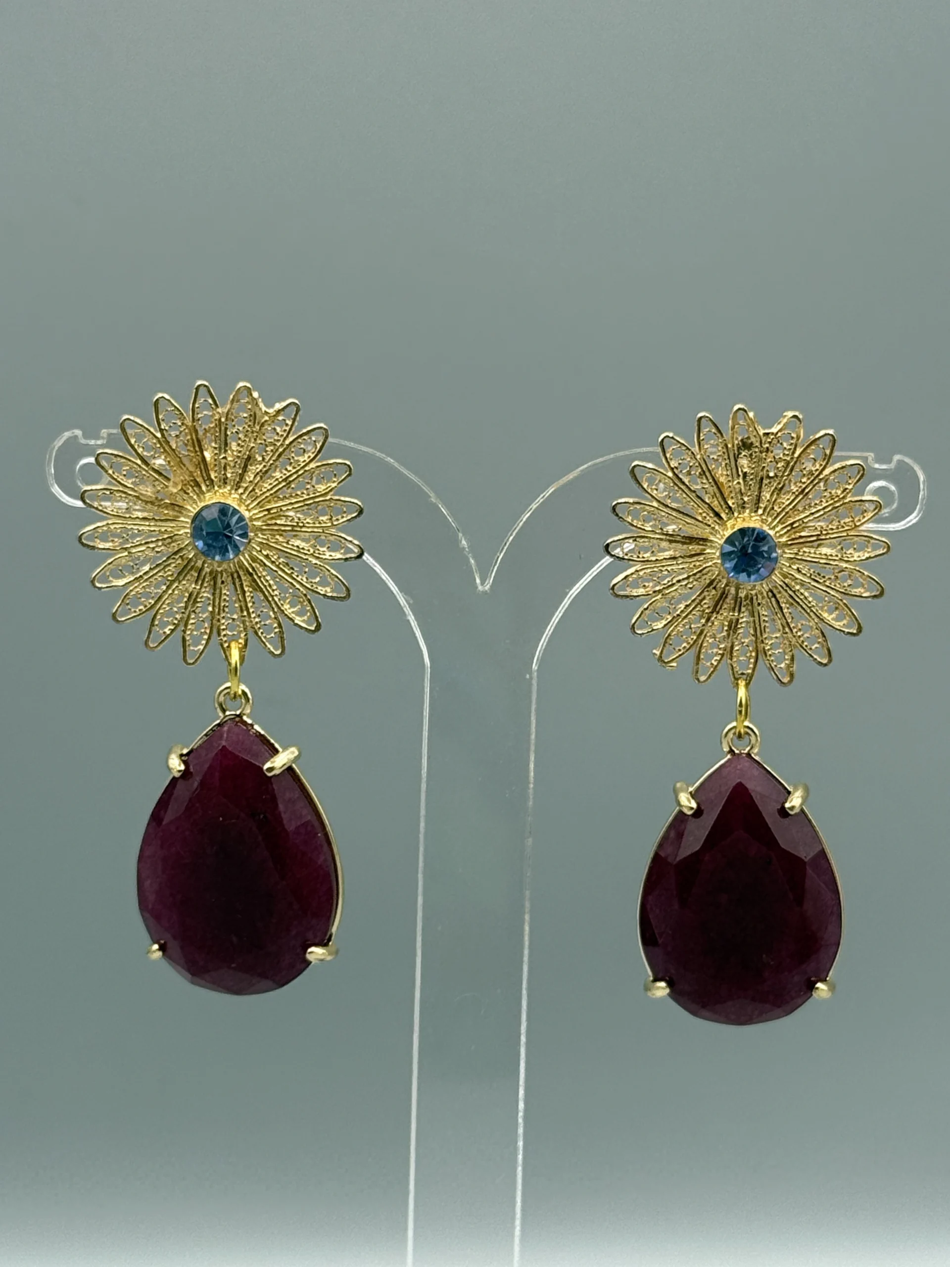 Pendientes dorados de filigrana ESTRELLA azul