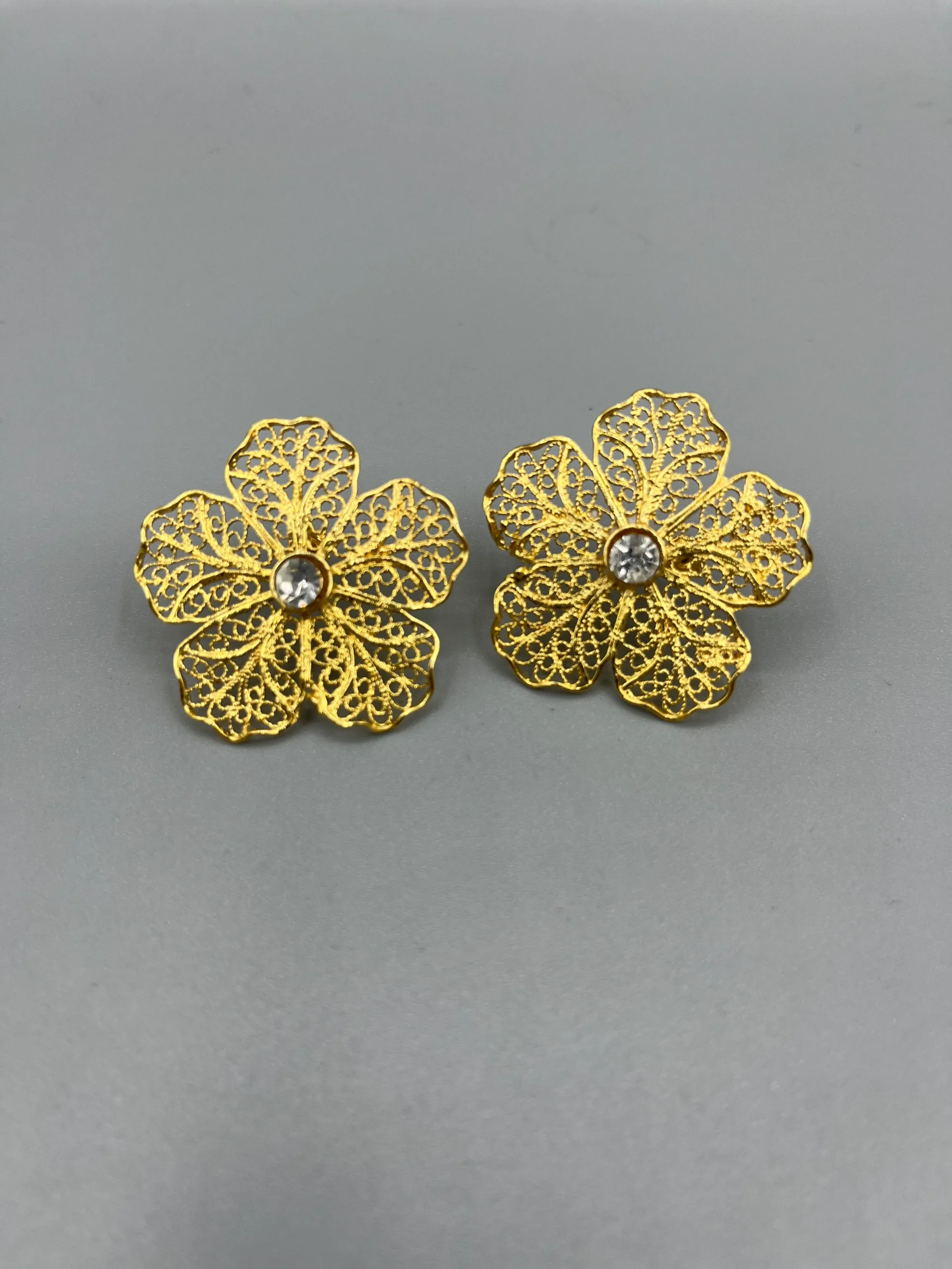 Pendientes dorados de filigrana FLOR GRANDE BLANCO