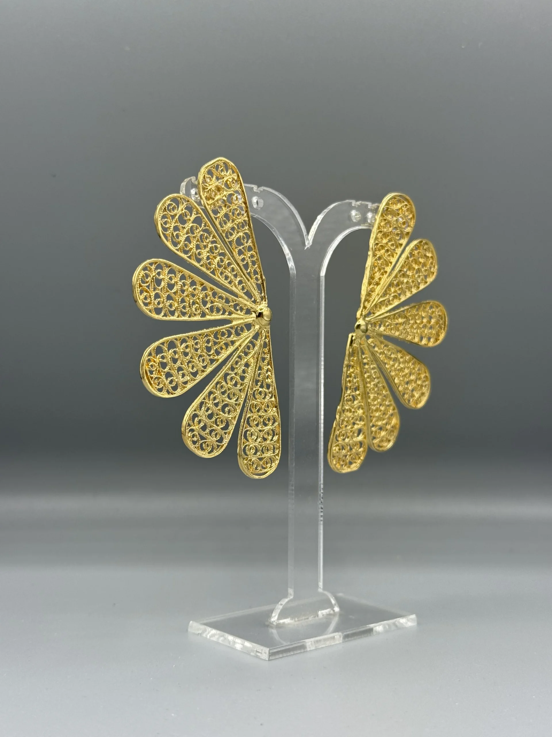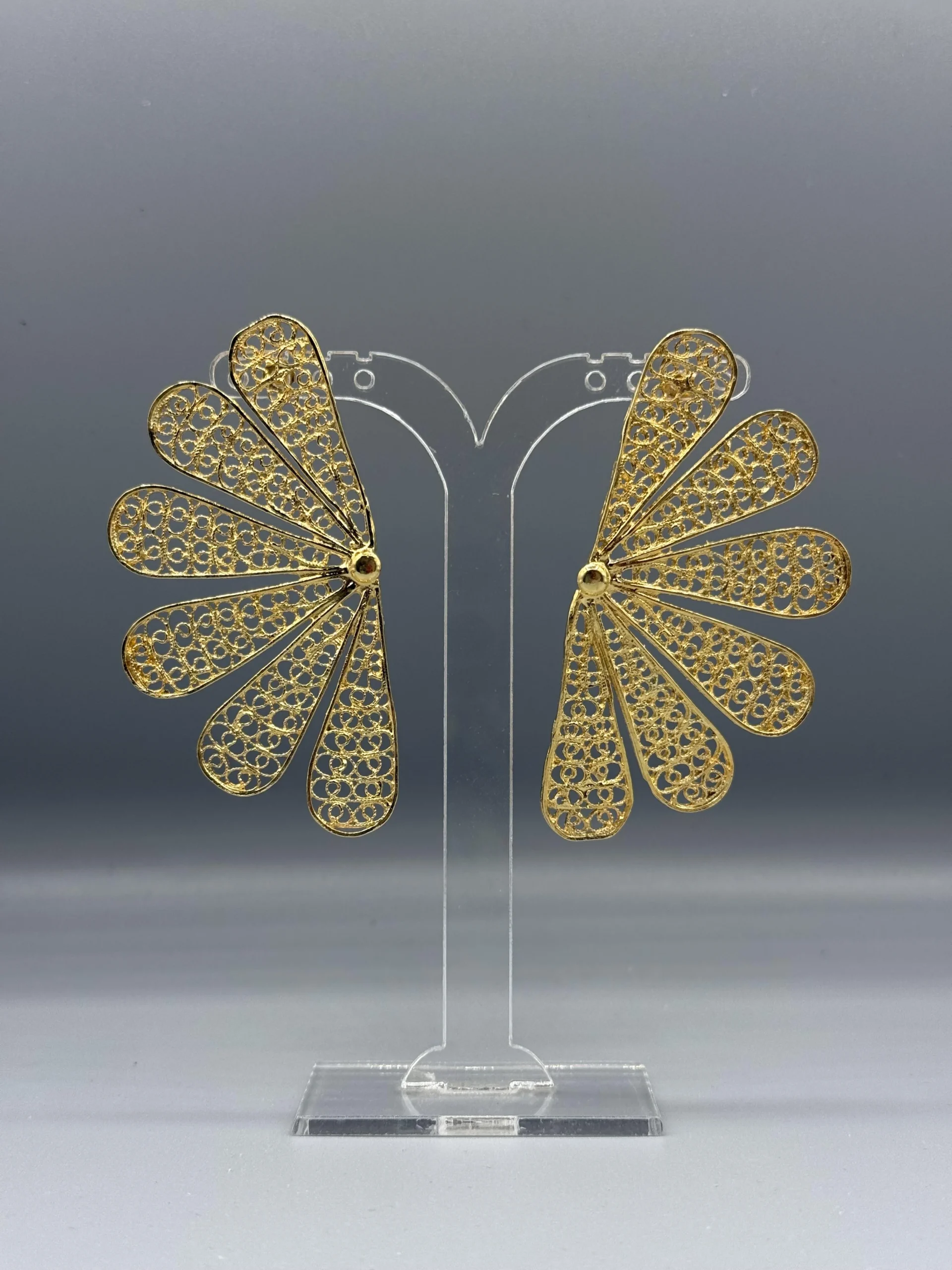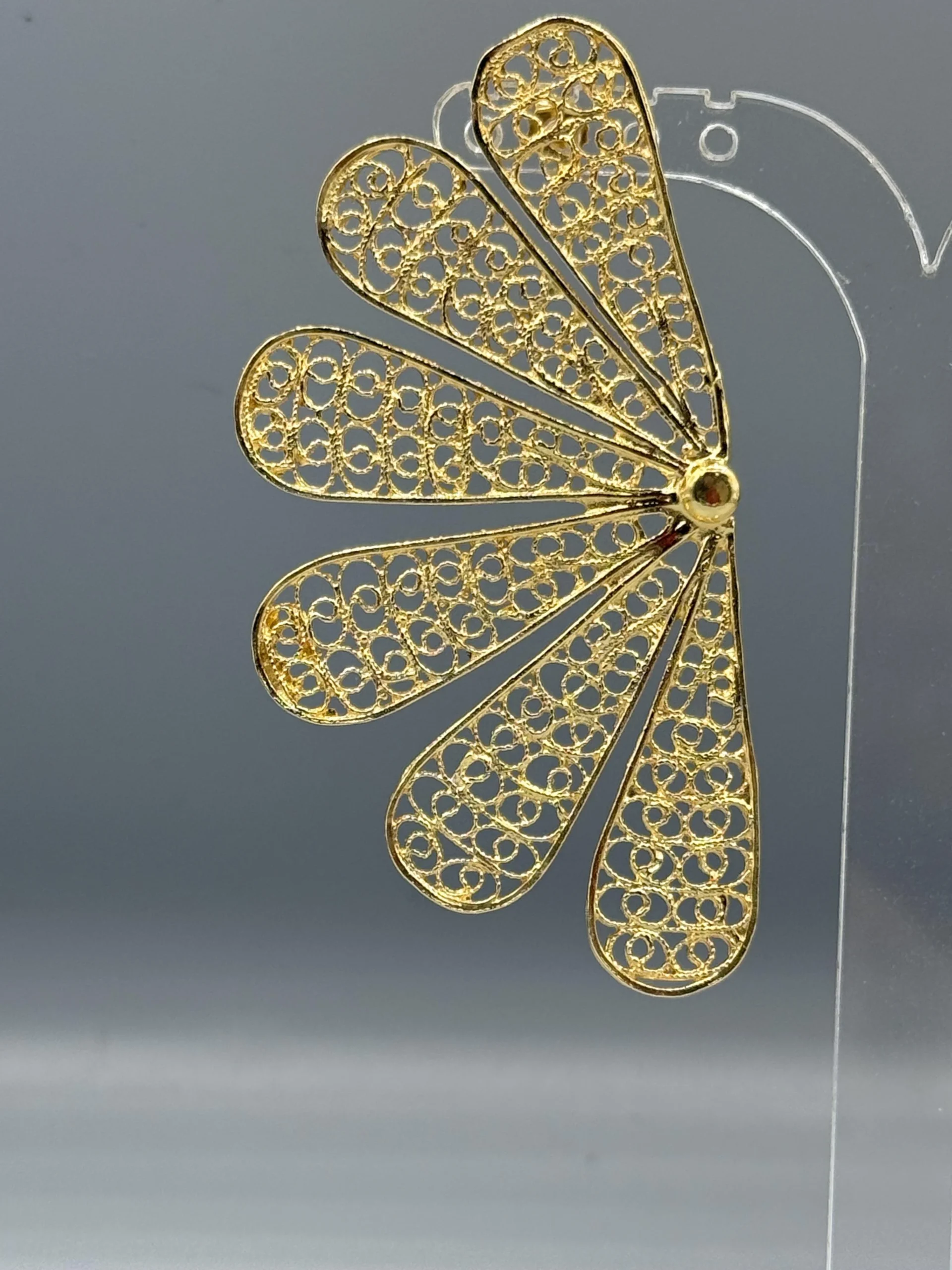| Agrega sofisticación a tu look con estos pendientes dorados de filigrana de metal bañados en oro. Estos pendientes son la elección perfecta para una apariencia elegante y con estilo. |